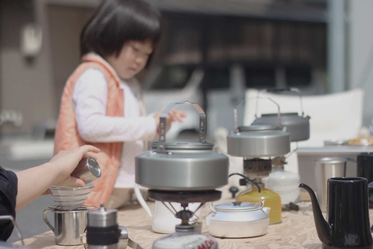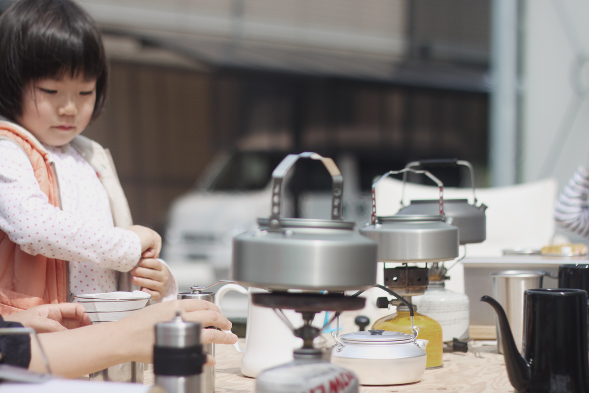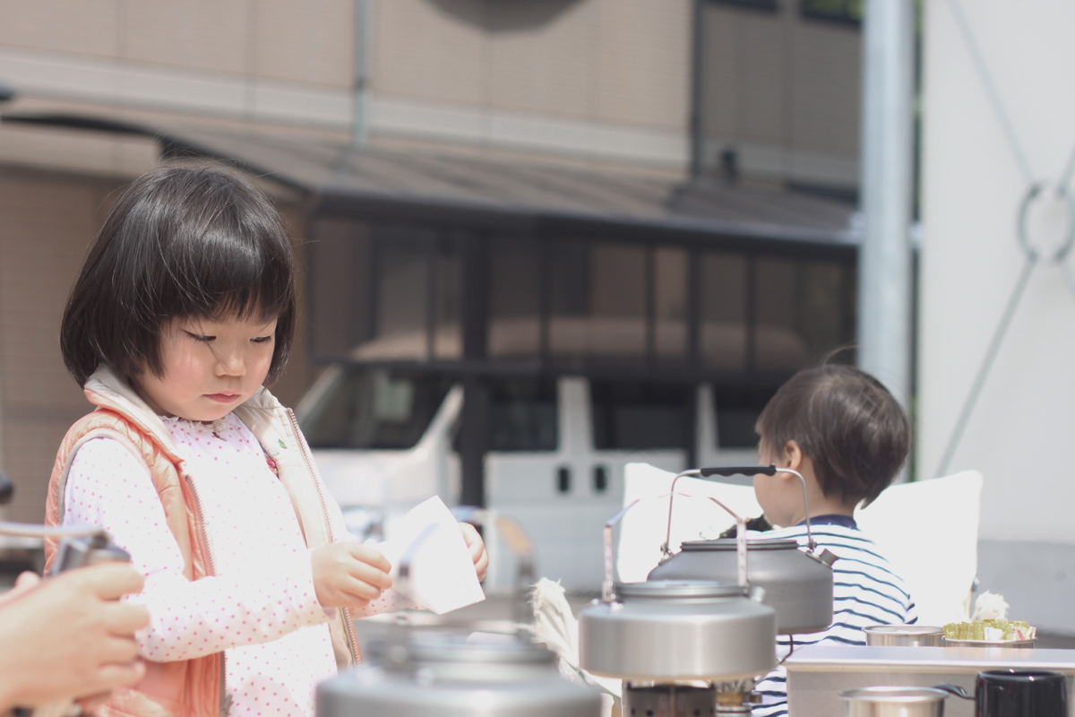 空気展でAIR SHODOU展示中のAGm。こどもの日にはノノンカさんがコーヒーガリガリワークショップをしていました。オープニングにやった時は室内だったけど、もう暖かくなったので、藤江さんオリジナルの鯉のぼりテントもでて、ポカポカ陽気の中アウトドアなかんじでコーヒー豆ガリガリ。家でもコーヒー豆ガリガリ担当の奏に今日もガリガリしてもらいました。円錐型のフィルターの場合にお湯を注ぐときは円を描かないで真ん中に注ぐそうです。ぽたぽた。