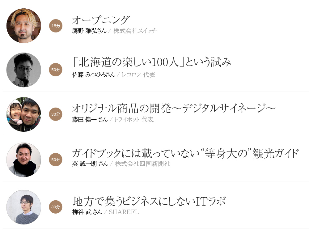 あと、広島WEB TOUCH MEETINGでおなじみのトライポットの藤田さん、サイネージの仕事など面白い仕事をどうやってとってきてるか秘密を教えてくれるみたいです。