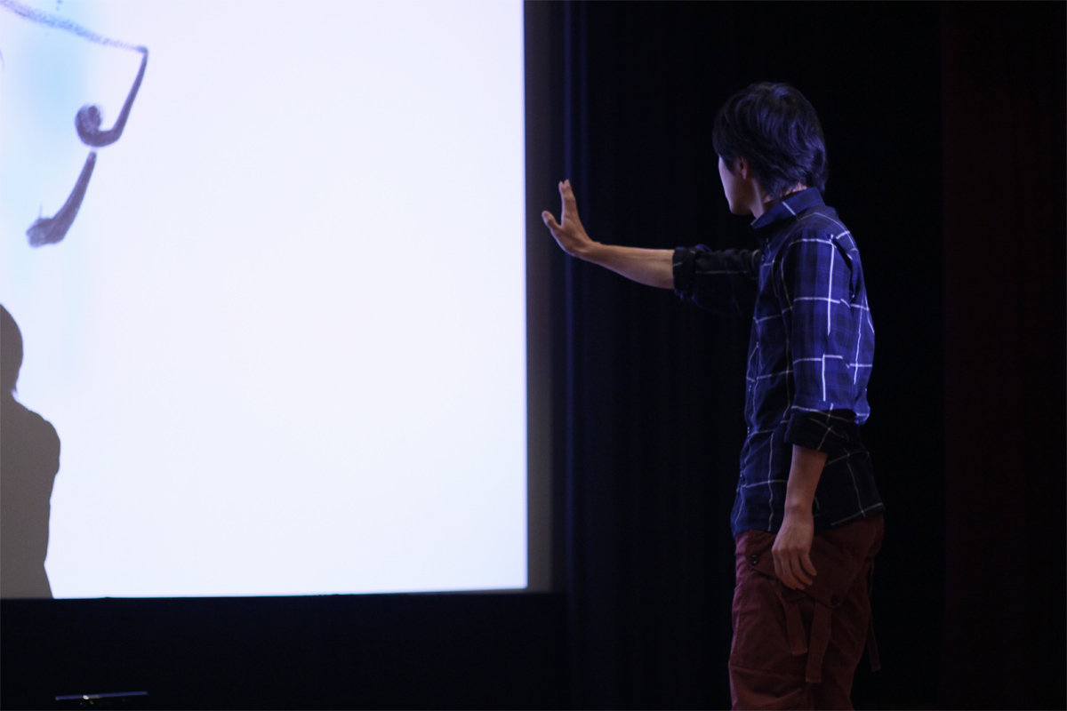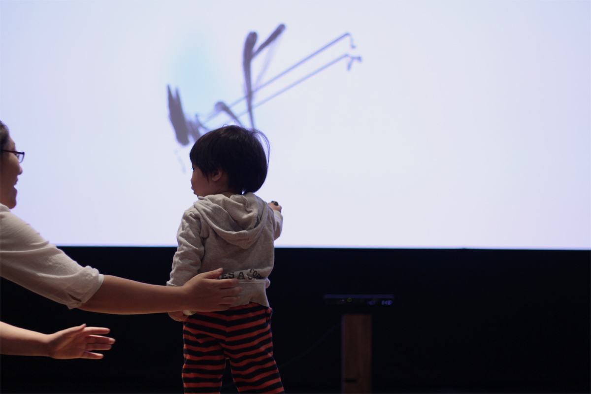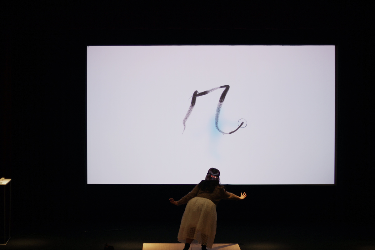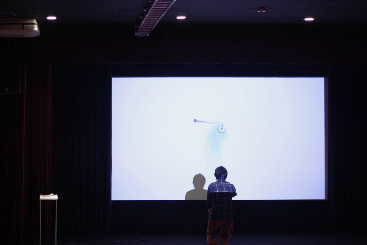 新しく改装してきれいになった横川シネマのステージとシネマスクリーンでAIR SHODOUを展示させてもらいました。