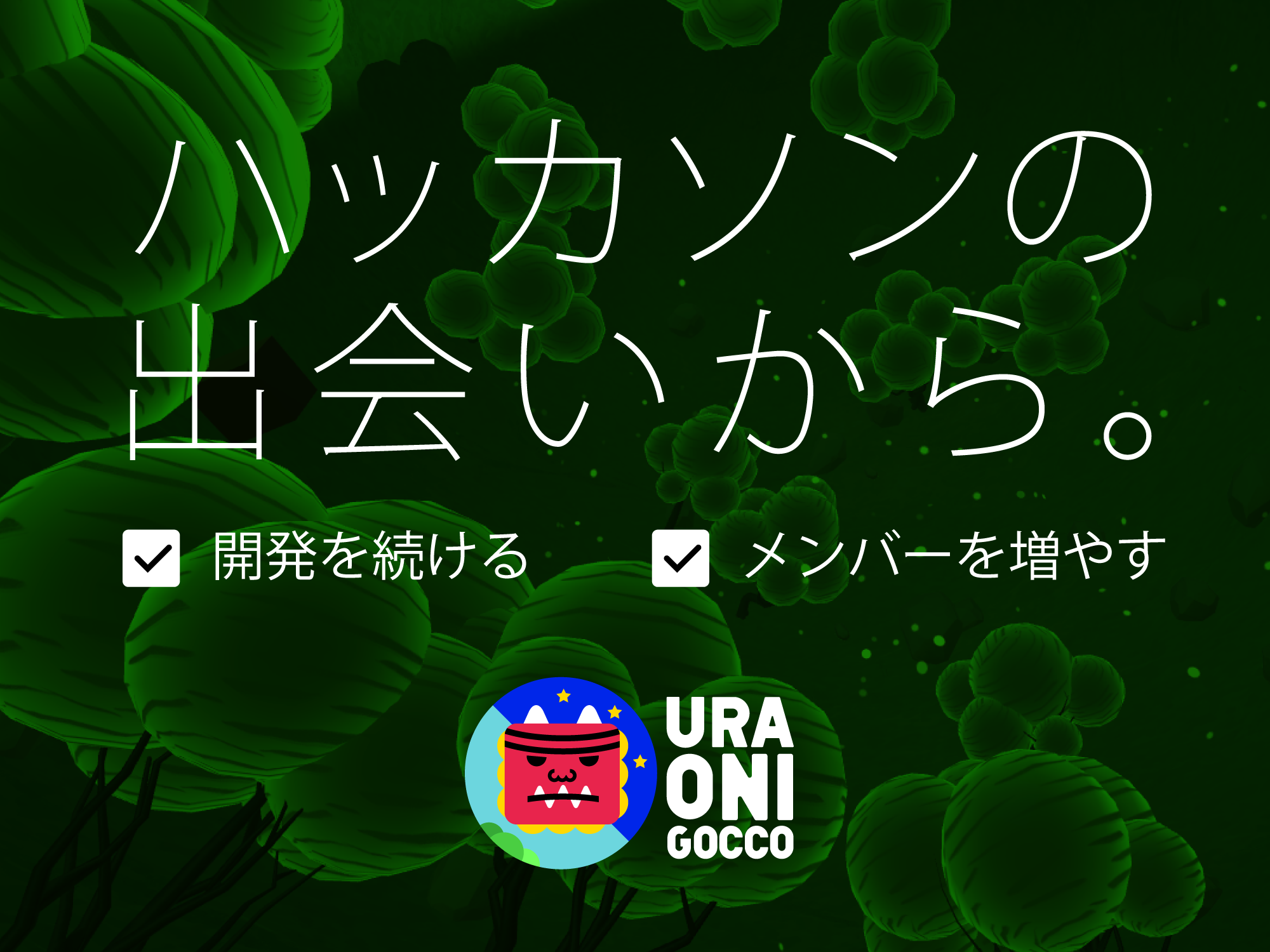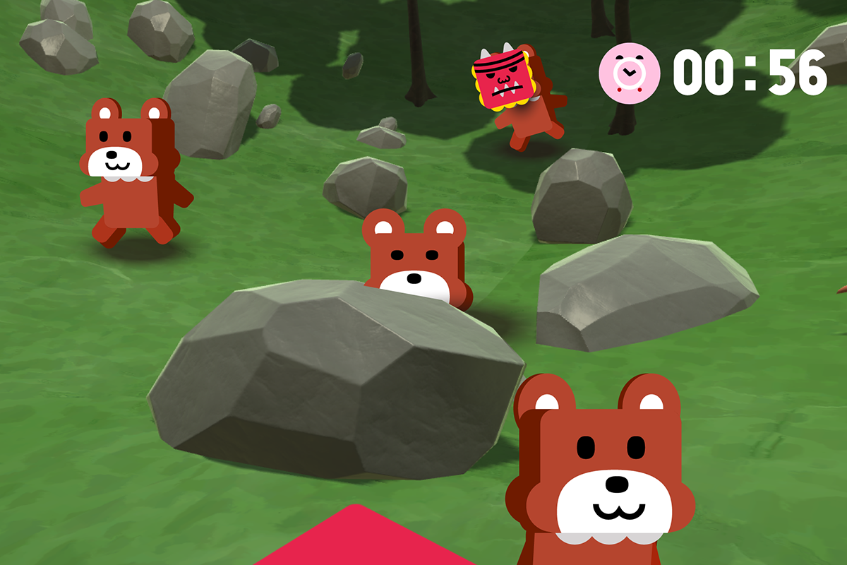 現実では体験できない世界を作ろうとアイデアソンで企画したURA ONI GOCCO。 その企画の軸は、Oculusを活かそうというテーマにしました。 3次元空間を上下左右も後ろも自由にキョッロキョロできるVRの中で一番没入できる視野角を持つOculus、 左右のパノラマだけでは楽しめない、上下も視認すると上手に遊べるコンテンツにするほうがより面白くなるのではというアイデアです。 鬼ごっこをすることになり、見つからないように鬼から逃げたりします。「見上げれば世界の逆を見下ろせる」という世界なので 木陰に隠れたりしながら世界をうろうろ。「鬼になっているときも」「鬼になっていないときも」相手を見つけつつ相手に気づかれないようにすることが、上手なプレーとなります。 相手に見つからないように、相手をみつける、そして、スニーキング。鬼の場合は肉食獣のように相手の視界に入らないように近づけば鬼をタッチしやすいですね。 現状は上下左右キーでの移動操作ですが、今後はゲームコントローラーやキネクトでのUIも取り入れていく予定です。またnode.jsやphotonでの通信対戦も実装していきます。