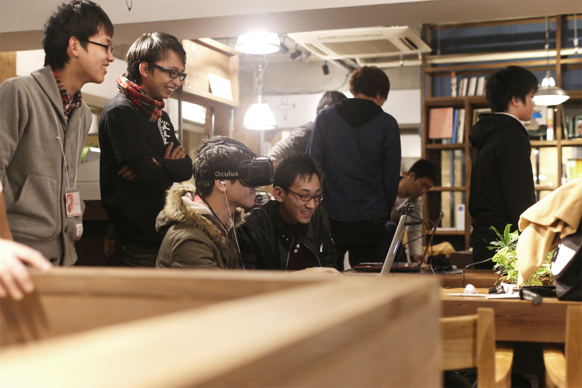 開発風景。うちのチーム以外も、いろいろ面白い開発が行われました。お化け屋敷や、アリ目線のゲーム、ハイジのブランコ体験など。 ハッカソンでは開発が中途半端になったり、企画がオープンになったりしてしまうデメリットもありますが、出会いのあることは有意義なことだなーと思います。 チーム開発でもイベント運営でも力を発揮していた尾倉さん。運営の方々、参加された方々ありがとうございます。 まだなかなかビジネスにならないVRの世界ですが、面白いものがどんどん生まれるエンジニアコミュニティーが活性化すればよいなーと思います。