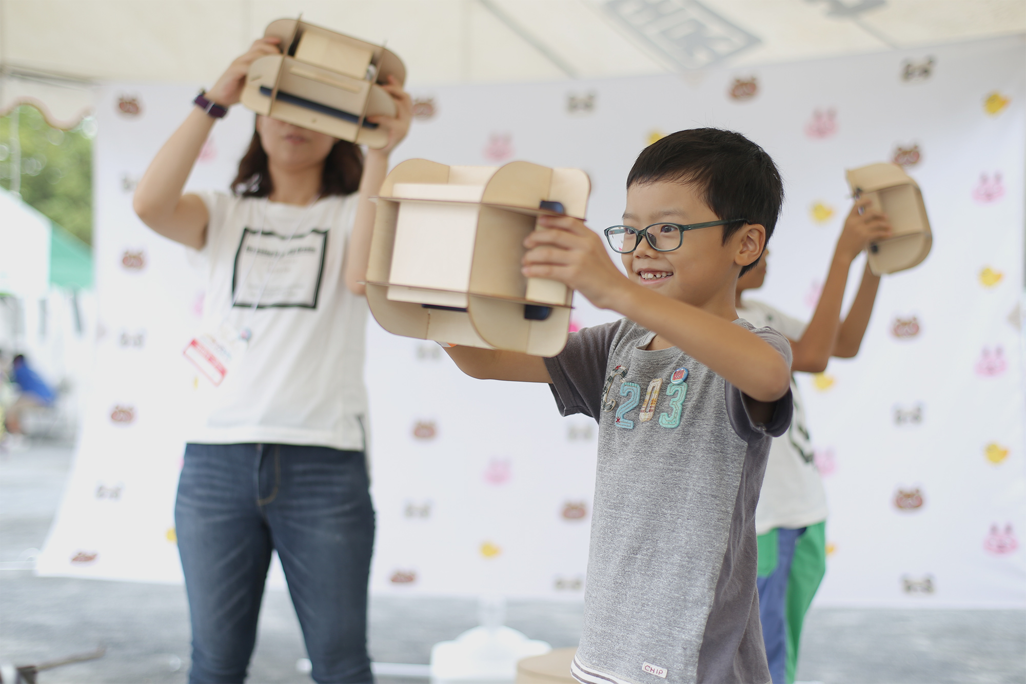 シェアフルからはAIR SHODOU(エア書道)を出展、こぐるみプロジェクトからは「ウラオニゴッコ」と「おにみっけ」を出展します。